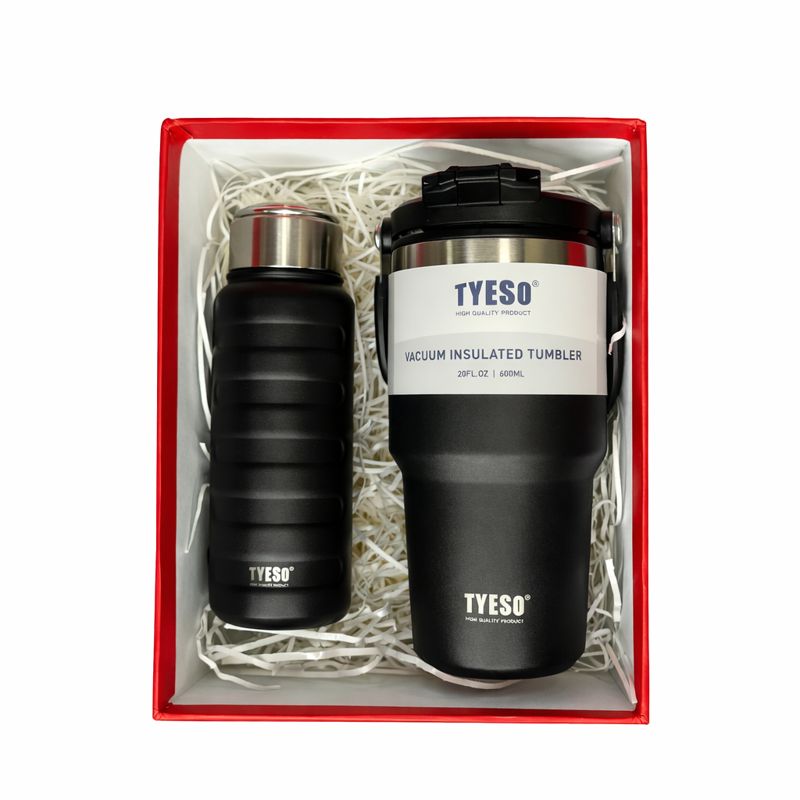 این پک هدیه شامل تراول ماگ و فلاسک TYESO با طراحی مینیمال و رنگ مشکی است، کیفیت ساخت بالا، عایق حرارتی قوی و طراحی کاربردی، این پک را به انتخابی ایده آل برای استفاده روزمره، محل کار، سفر و هدیه ای شیک و خاص تبدیل کرده است